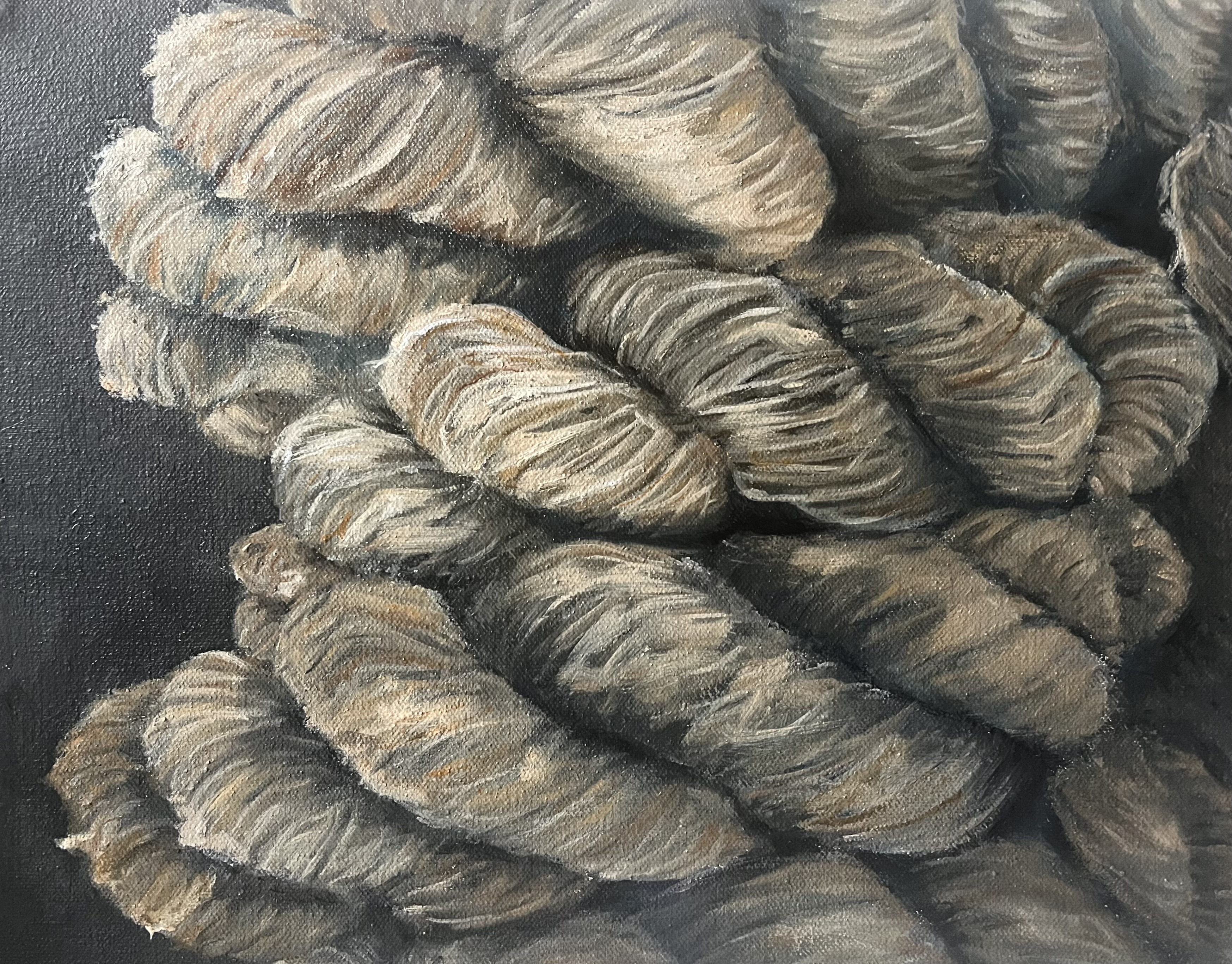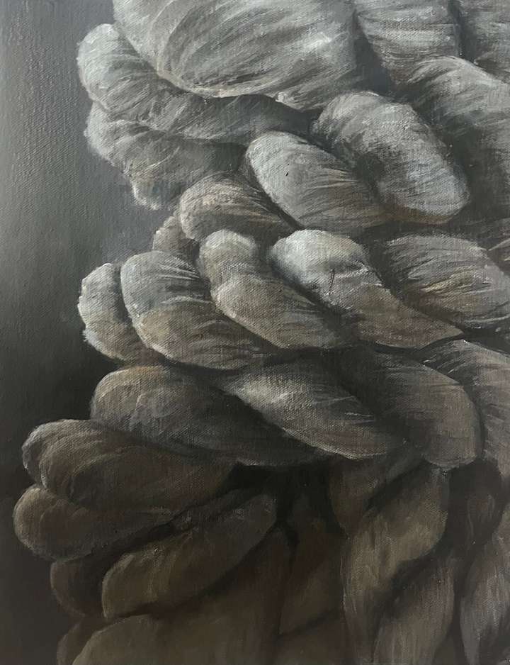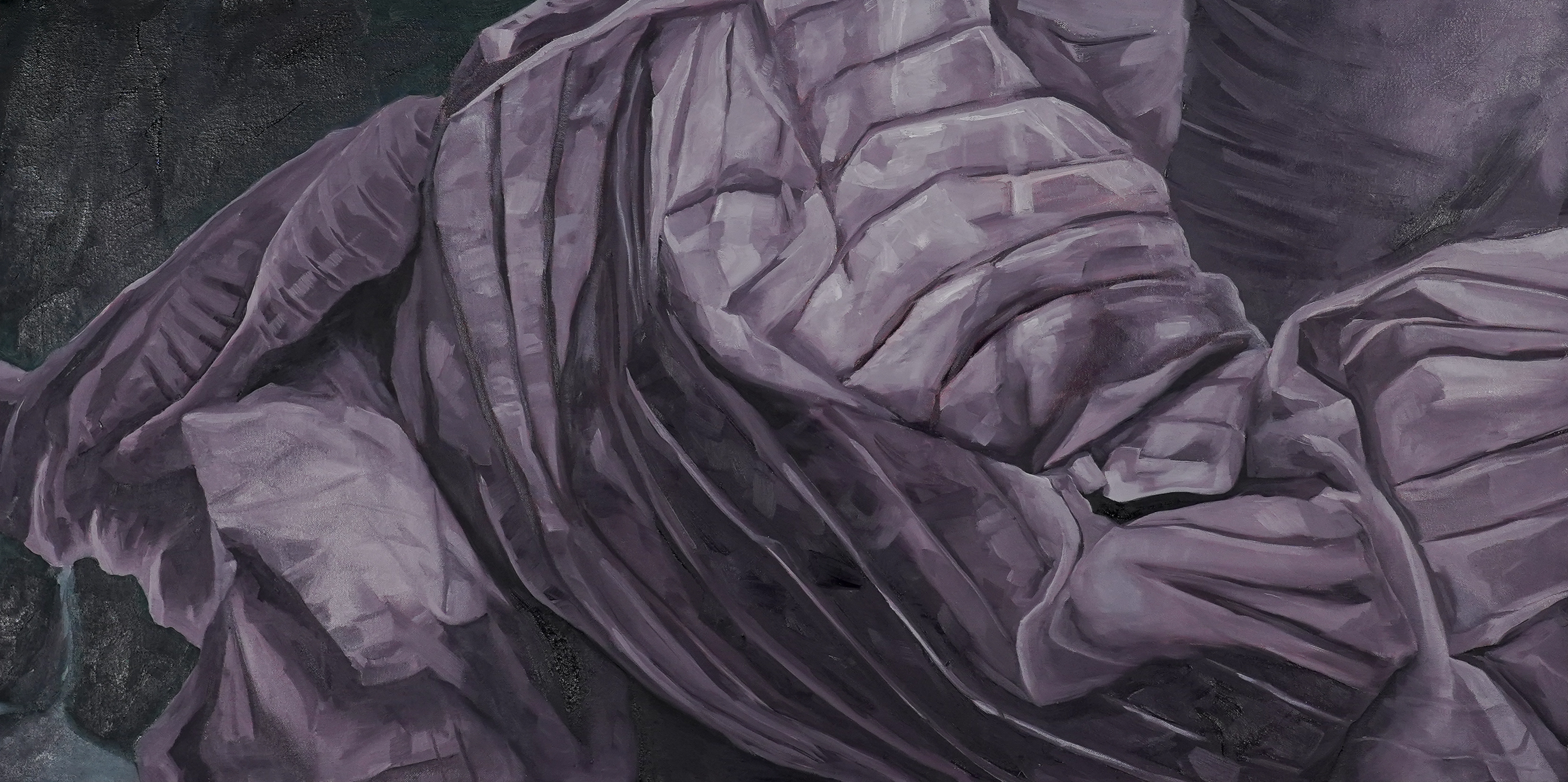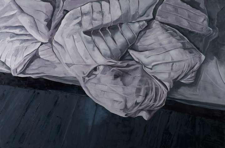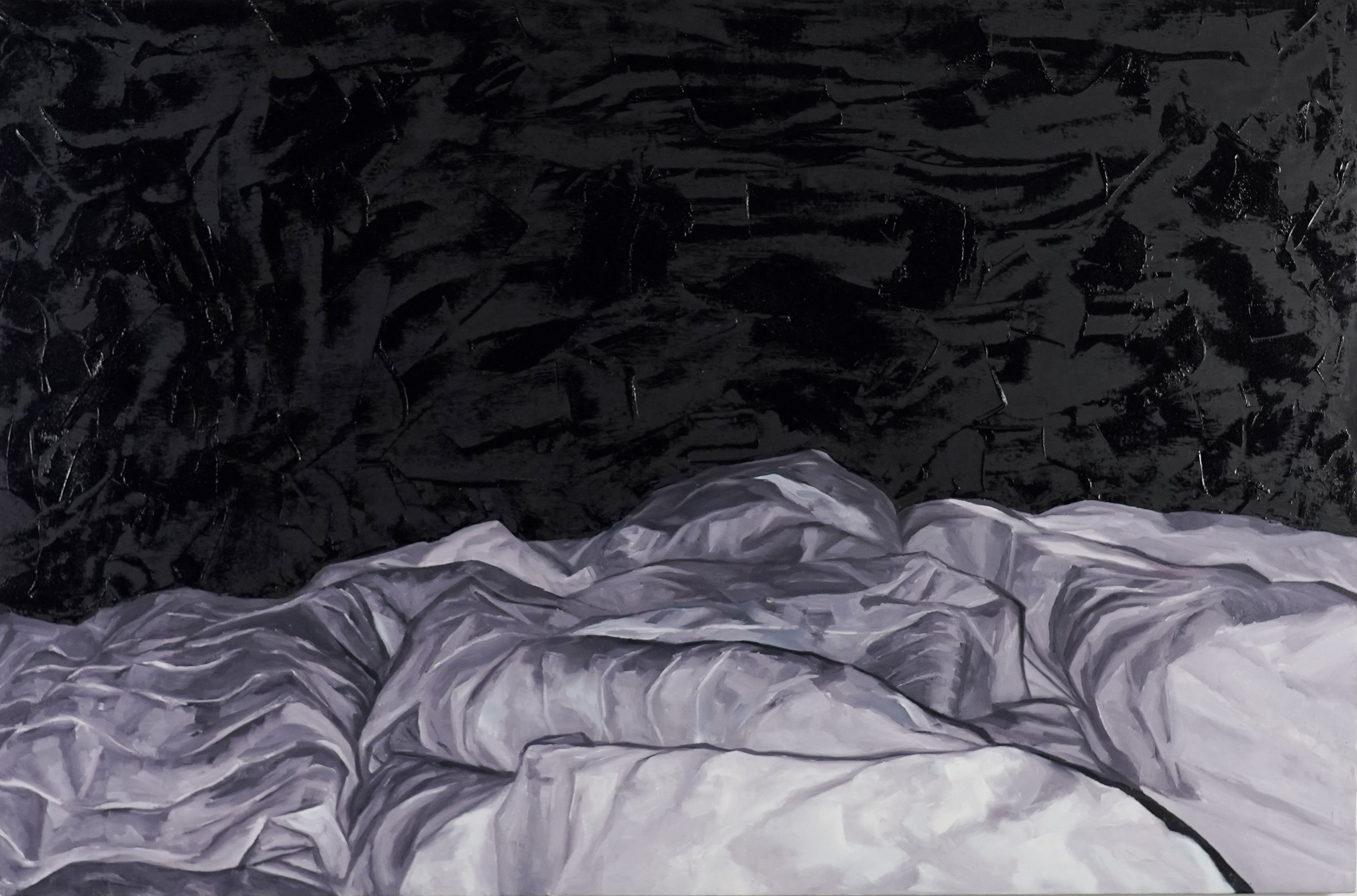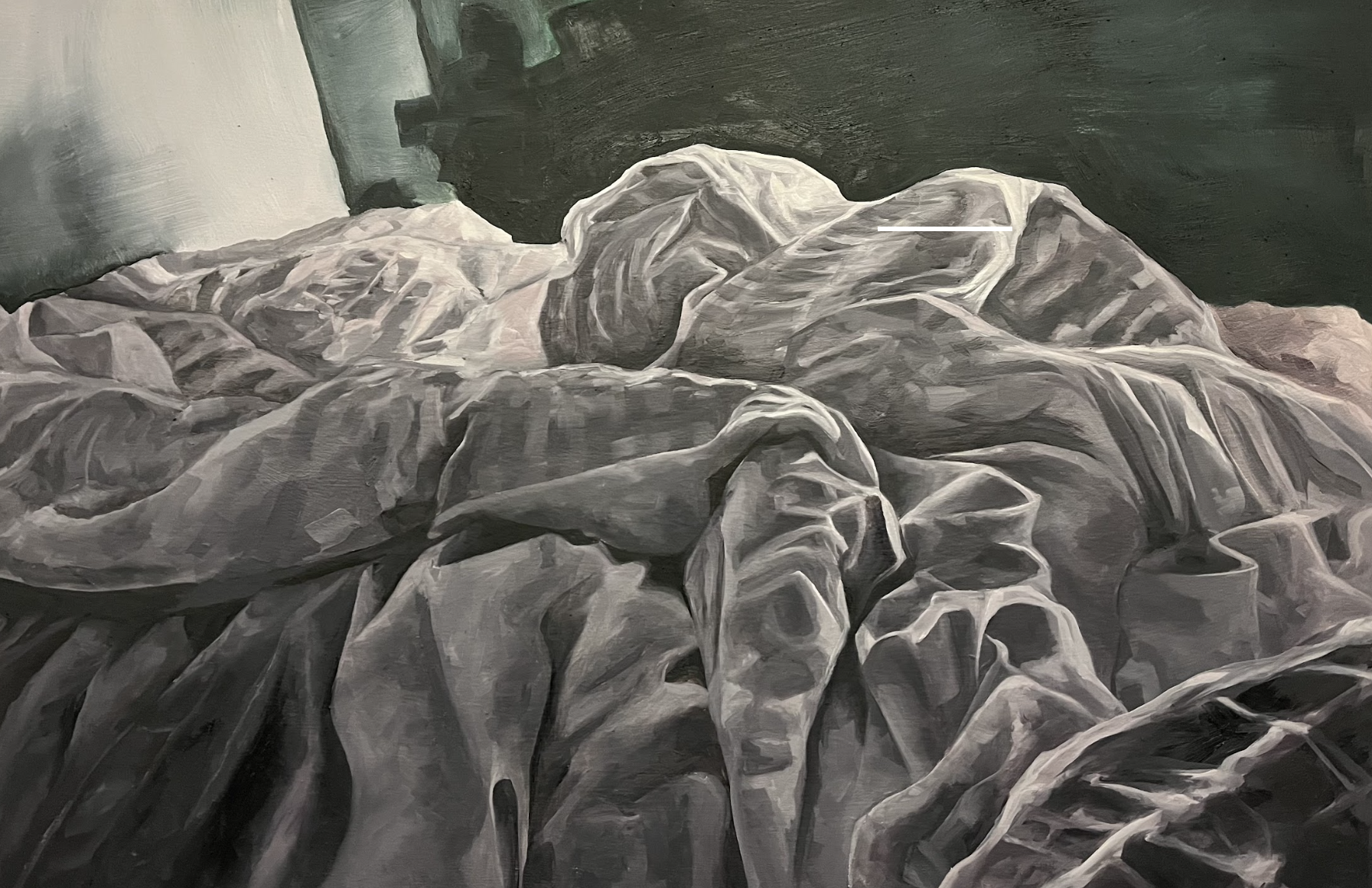 Lately, my practice has focused on platonic intimacy. Bedscapes, a series of emotional fabric landscapes, illustrates this through naturalistic oil paintings that merge classical landscape traditions with my tangible obsession with bodily fabric. This body of work reflects a universal longing for shared calm at the end of the day.