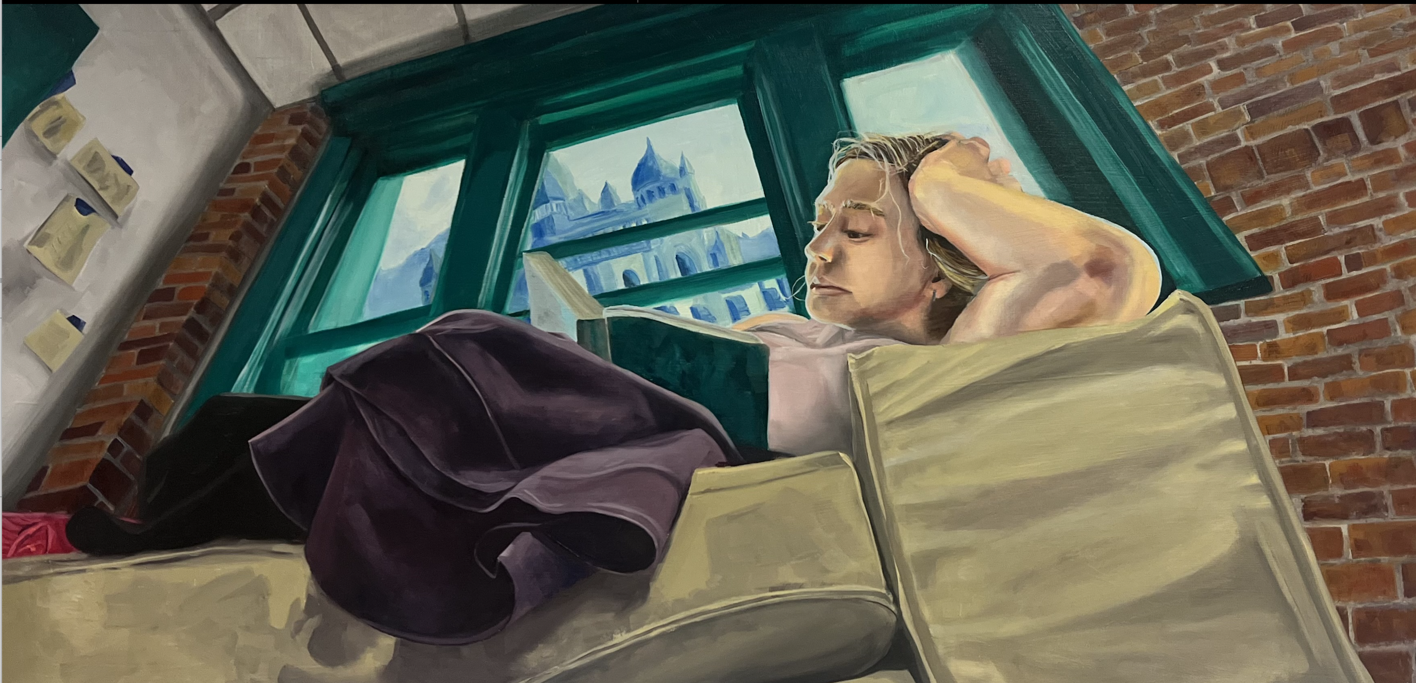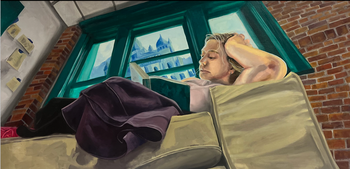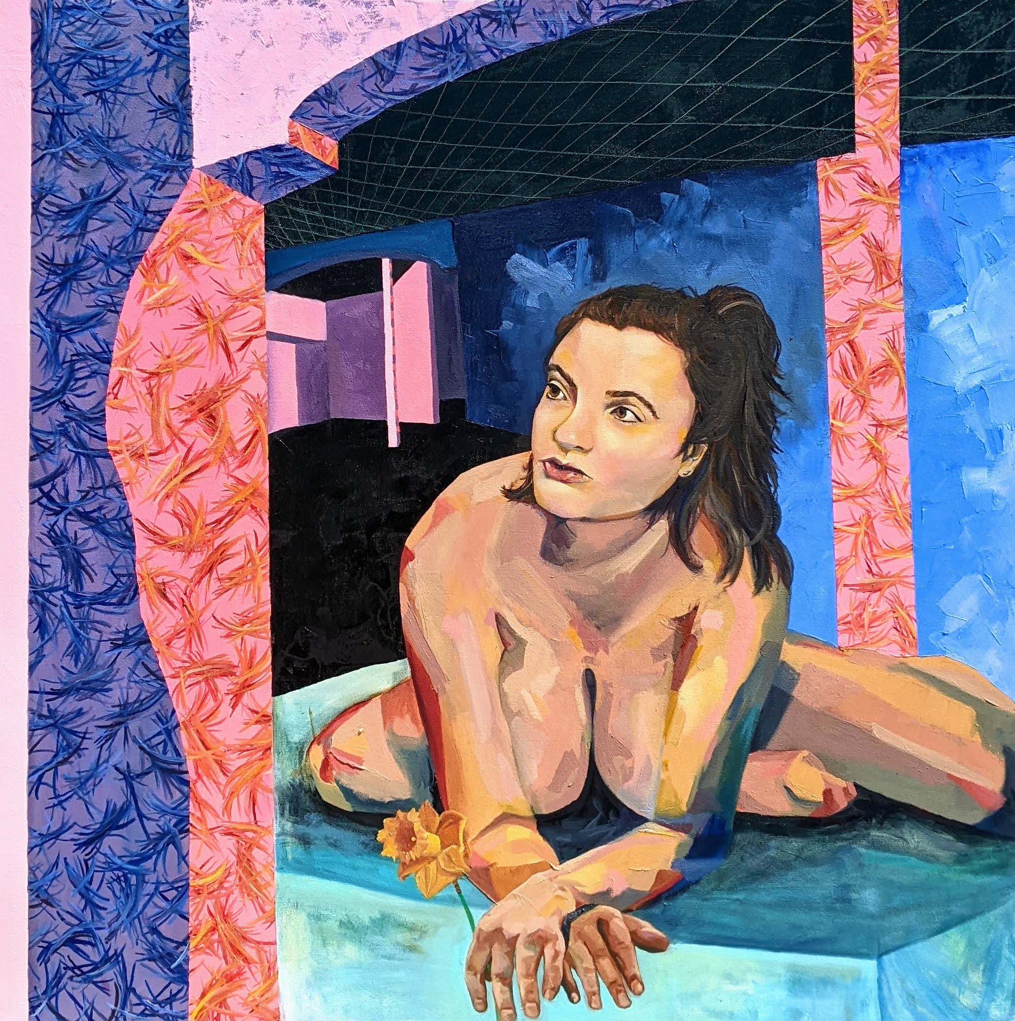 My work explores the intersection of the human body and its surroundings, often depicting interior and exterior scenes illuminated by reflective light. I am particularly interested in imagination as a tool for reinventing memory, and frequently incorporate elements of color theory through a limited palette in my compositions. Beyond aesthetics, I am deeply committed to art as both an academic pursuit and a means of healing. I believe art has the power to challenge and break boundaries, and I use my work to explore the complexities of space and togetherness.
